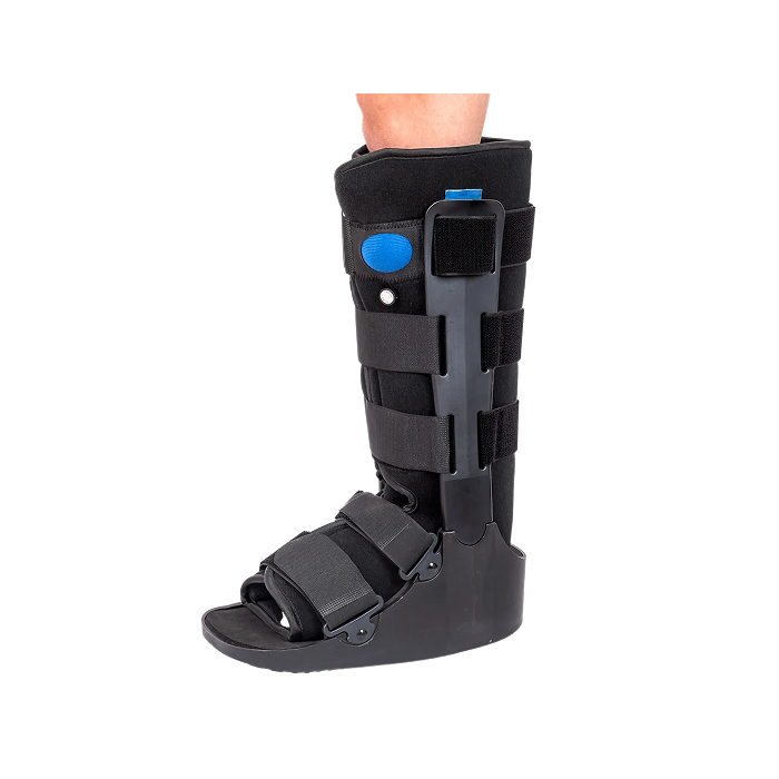 The fully integrated inflatable air-liner has an easy release technology for increased comfort and customized compression for further immobilization of the lower leg, ankle and foot to assist in the healing process.
